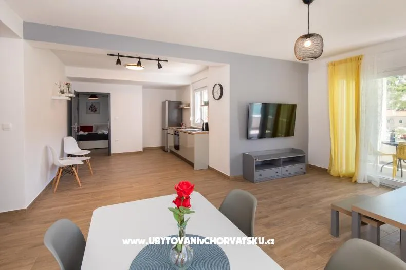 Apartmant Luni 1 is located by the sea, apartment has its own balcony, fully equipped kitchen, washing machine, free wi-fi and air conditioning. Master bedroom has it own balcony and private toilet.