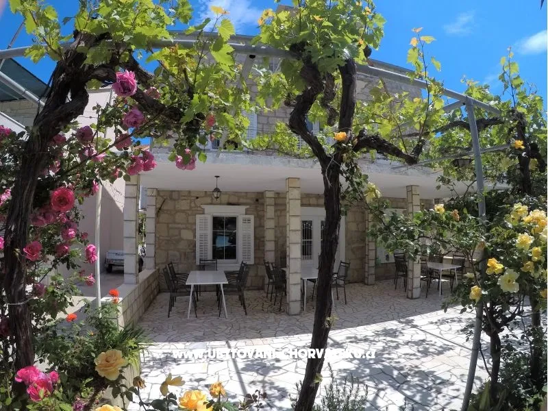 House Lopin is situated in the heart of Žuljana, a charming small town. Its location is simply unbeatable, with the beach just a stone's throw away. Enjoy the day's excitement, surrounded by beautiful nature and buzz from the beach. But once the evening comes you will have a quiet moment to enjoy the most beautiful sunset. The house Lopin layout consists of a shared kitchen and terrace on the ground floor, followed by four cosy bedrooms on the first floor and a loft apartment on the second floor. Additionally, there's a separate apartment with a private entrance on the opposite side of the house. With ample space, this house can comfortably accommodate 14+2 people.