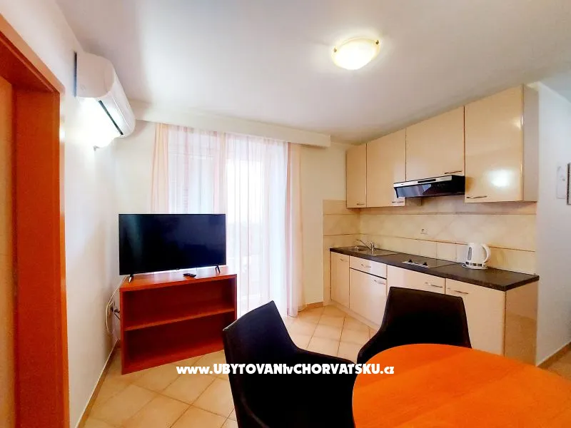 Apartment 2, with 3 stars, on the first floor, with a view of the sea, for 4+2 persons, 50 m2, with two bedrooms with double beds, kitchenette and sofa bed in the living room and one bathroom. The apartment has a balcony and a sea view.
