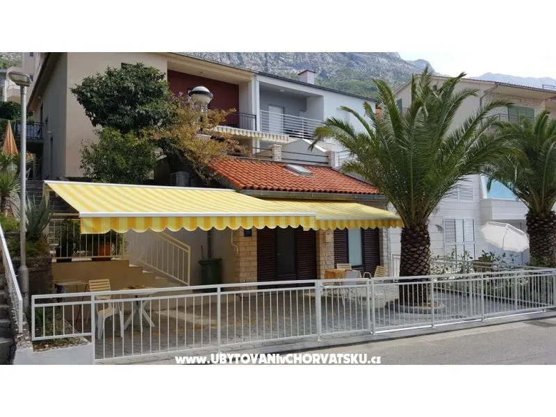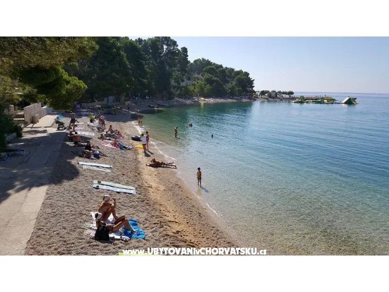 House for rent, Brela Croatia rooms, Villa Sodan is situated 50 m from the beautiful pebble beach (seen on the picture) by the crystal clear Adriatic sea. The house Villa Sodan Brela Croatia has 5 rooms, a spacious living-room of 25 m?, kitchen of 16 m? and a terrace of 40 m?. The rooms are double, but they can by inserting additional cots easily convert into three bed rooms at your request. All rooms have a private ensuite bathroom. Rooms with bathroom are between 16 m? and 19 m?. Each room has its own table on the terrace. The living room is equipped with a big-screen TV with SAT system and computer with Internet access for personal use. At your request we can prepare and serve breakfast. For larger families or group visits you can rent two or more rooms (up to 5), in which case you will have your own kitchen, the idea being that the entire house (five rooms) can be converted into a big apartment where each room will still have its own bathroom ensuite. That being the case, we can rent you an apartment within our house with up to 10 or even 12 beds, its own kitchen and the above described living room (apartment house).The beach has a blue flag of the European Union indicating the level of cleanliness of the sea water and the beaches is up to highest standards. Our house Villa Sodan Brela Croatia is perfectly situated, bearing in mind that it is located only 400 m from the centre of Brela (5 to 10 minutes walk), 1,000 m from Baška Voda (10 to 15 minutes walk), 200 m from the Berulia hotel, 15 m from the supermarket (opened from 07:00 till 21:00) and 150 m from the nearest restaurant. There is a large parking-lot in front of our house, so each room has its own parking place. In view of all of the above, you can easily conclude that in our villa in Brela, you can spend a quality vacation without even using a car. If you really want to have a good rest, your first choice should be a room with a private bathroom ensuite with an access to kitchen where you can prepare your own breakfast or order it from us and consume it on the terrace with a beautiful sea-view, whereas in the evening you can eat in one of the prestigious restaurants in Brela or Baška Voda. Thank you for visiting our web pages and we hope that you will visit us and enjoy our pleasant accommodation and natural vistas that only Brela can offer. And do not forget - Brela are blessed with a 5 km long stretch of pebble beaches with beautiful and well-light promenade stretching along the entire beach. For more information, please contact us via email.