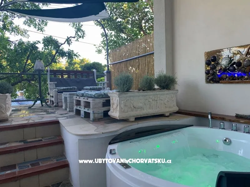 Paní majitelka má nafocen vrchní apartmán s vířivkou na balkóně ten vypadá z fotek velmi pěkně na něj má plno volných termínů ale když si je vyžádáte tak vám nabídne jiný apartmán který je sice na fotkách nafocen a má také vířivku ale je v přízemí a ten vůbec neodpovídá této ceně a ani není tak pěkný. +přízemí +apartmán hned u moře +ložnice mají svoji koupelnu -provoz na silnici hluk v noci -zamčený zadní vchod terasy s věcmi jsme musely zbytečně obcházet -TV 4 programy z toho 2 reklamní český žádný -brzy ráno údržba okolo domu(zametání,mačkání odpadu) -terasa (nevhodné sezení a špatný výhled) -jedna koupelna už něco pamatuje (chtělo by to rekonstrukci)na4*to opravdu neodpovídá -celkově určitě apartmán neodpovídá 4 hvězdám (starší vybavení-koupelna,sedačka,věci kuchyni,skříně,matrace