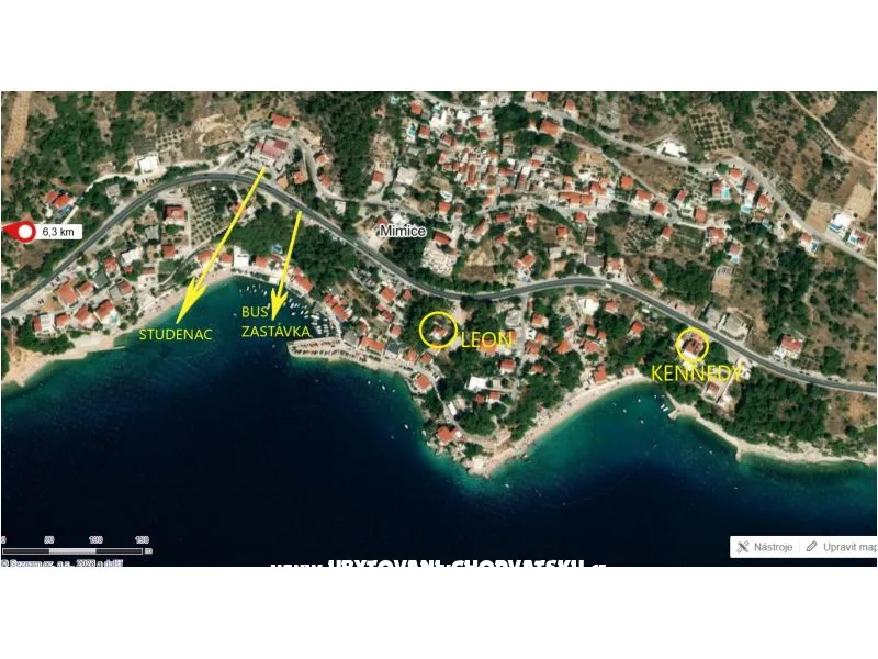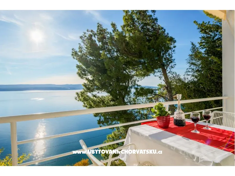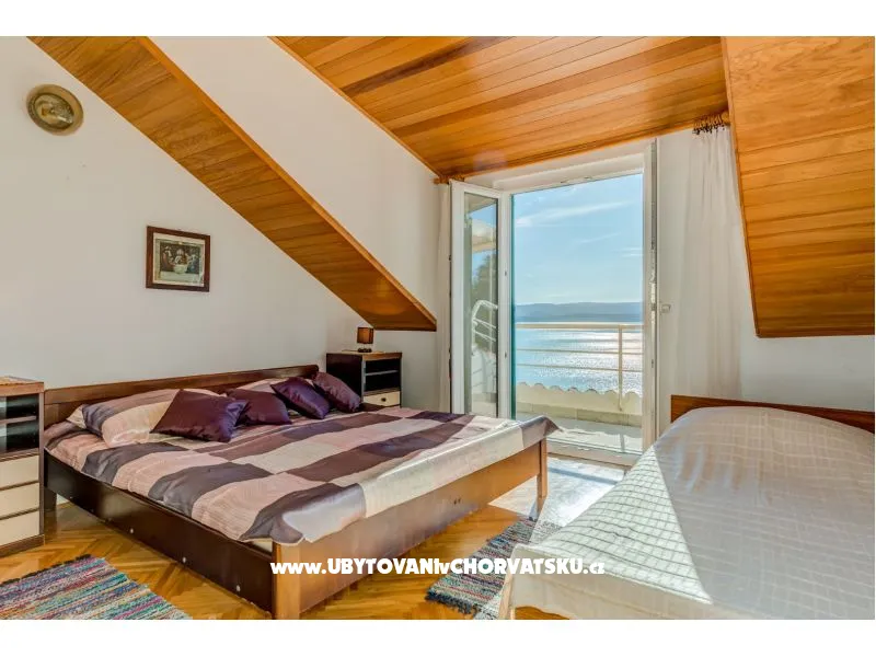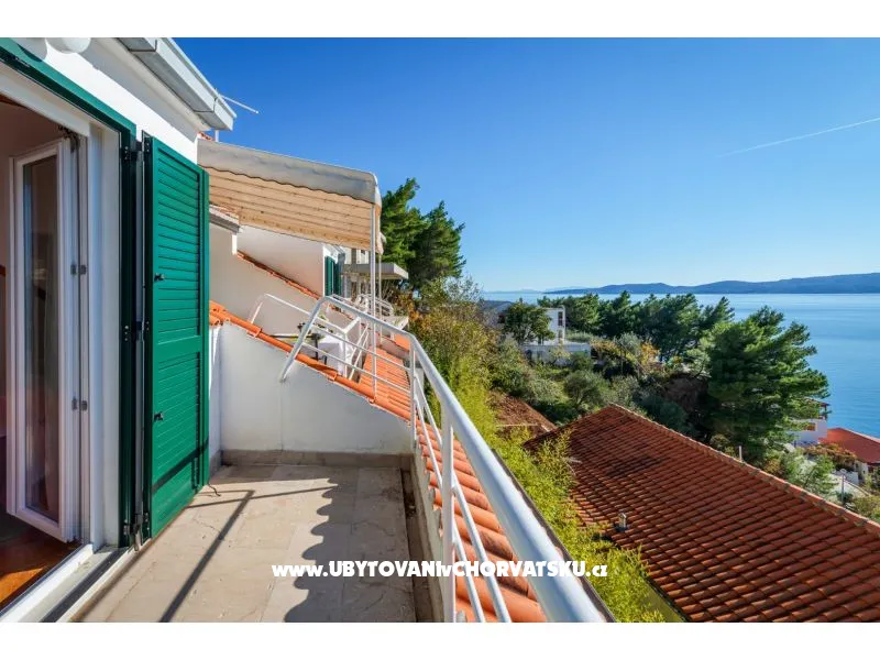 LOCATION: apartments with a beautiful view and a convenient location above the beaches of the resort of Mimice. The house is in a quiet location below the main road. The resort center and the beach are accessible by stairs (130 steps) that lead directly to the sea or by a steeper path that leads to the center of Mimice. FACILITIES: air conditioning, terrace with barbecue, free parking above the house, wi-fi. ACCOMMODATION: Apartment A6+2 (no. 1) - a spacious apartment with an area of ??113 m2 with its own entrance is located in the attic of the house and offers a beautiful sea view from the terrace, 3 separate bedrooms (2x for 3 people and 1x for 2 people), where each bedroom has its own balcony with a sea view, a large living room with a terrace and a beautiful sea view, air conditioning (5,- EUR/day), dining table, sofa, android TV. The apartment has 2 bathrooms with toilets and a fully equipped kitchenette with a large refrigerator and freezer. We recommend it for large families or friends who want to spend their vacation together. Apartment A2+1 (no. 2) – apartment on the 1st floor with air conditioning (5,- EUR/day) and direct sea view, bedroom with double bed and bed for 3rd person, separate kitchenette with fridge, bathroom with bathtub and toilet, balcony with seating area and beautiful sea view. Studio S2 (no. 3 and 5) – studio on the 1st floor with double bed and air conditioning (5,- EUR/day), bathroom with shower, toilet, kitchenette with fridge, balcony with front sea view. Studio S2+1 (no. 4) – studio on the 1st floor with double bed and bed for 3rd person, air conditioning (5,- EUR/day), bathroom with shower, toilet, balcony, kitchenette with fridge is located on the side terrace with partial sea view. BEACH: there are 2 beautiful pebble beaches with a gradual entrance to the sea. A direct staircase from the apartment leads to a small pebble beach, other beaches are max. 250m away. CATERING: self-catering, many options for individual meals in restaurants in the area. SPORTS/ENTERTAINMENT/SHOPPING: post office, grocery store, bakery and pizzeria are located 300 m from Villa Leon. There is also a bus stop right next to the shop with a line to Omiš (approx. 14 km) or to the Makarska Riviera (approx. 20 km).