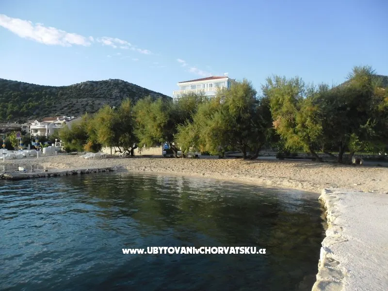 apartments MANDA Apartment in Seget Vranjica near Trogir, which is only 6 km away. The building is located directly by the sea, 10 meters from the beach. Ground floor-to 10 persons - Kitchen and living room (TV) with a large terrace with stunning sea views - Two bathrooms - 4 bedrooms (two doubles and two triples) First Floor: 9 people - Kitchen and living room (TV, air conditioning) with a large balcony overlooking the sea - Two bathrooms (washing machine) - 4 bedrooms (two double rooms with balconies, one with three beds and one small double room) Available: parking grill