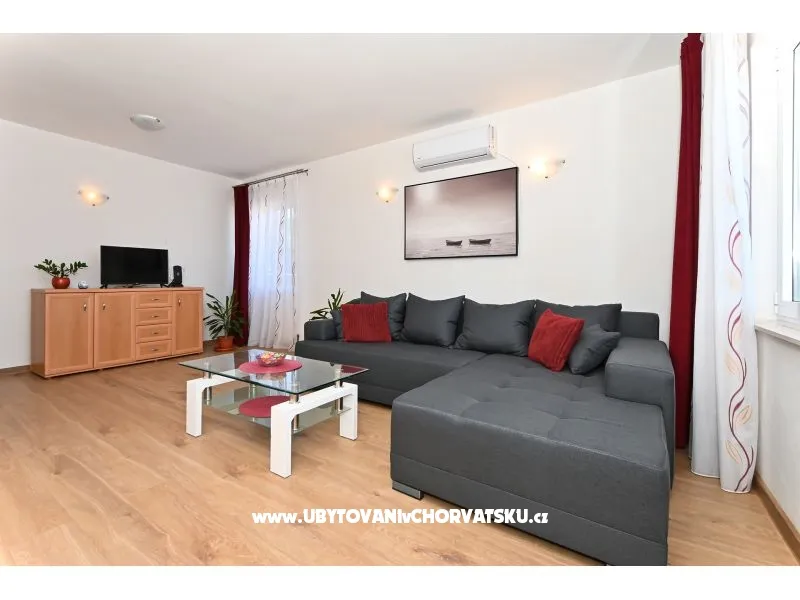 You pay 35% deposit + reservation fee per reservation. The rest is paid upon arrival at the facility. The minimum stay is 5 nights in the high season (July and August). Check-in is from 2pm; Check-out until 10 am. Apartment Radelic is located 150 m from the beach (type of beach: concrete, pebble). It has 1 private balconies / terraces with a sea view and 1 with a garden view. There is an additional barbecue area, with a kitchenette and an outdoor shower in front of it. The area is shared with the owners. Baby cot-on request. Outdoor facilities: outdoor grill, car access, private parking, garden, outdoor shower