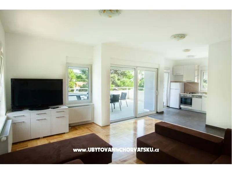 RO apartment, area of 55 m2, - Living room 40 m2, double bed 180x200 cm, kitchen, bathroom, TV set, dining table, - Bedroom 15 m2, double bed 160x200 cm, TV set - Garden terrace 30 m2