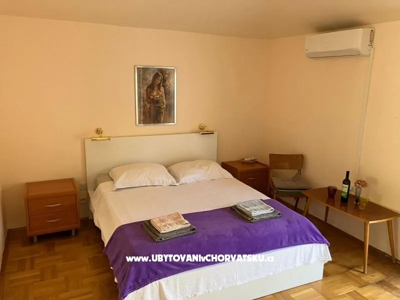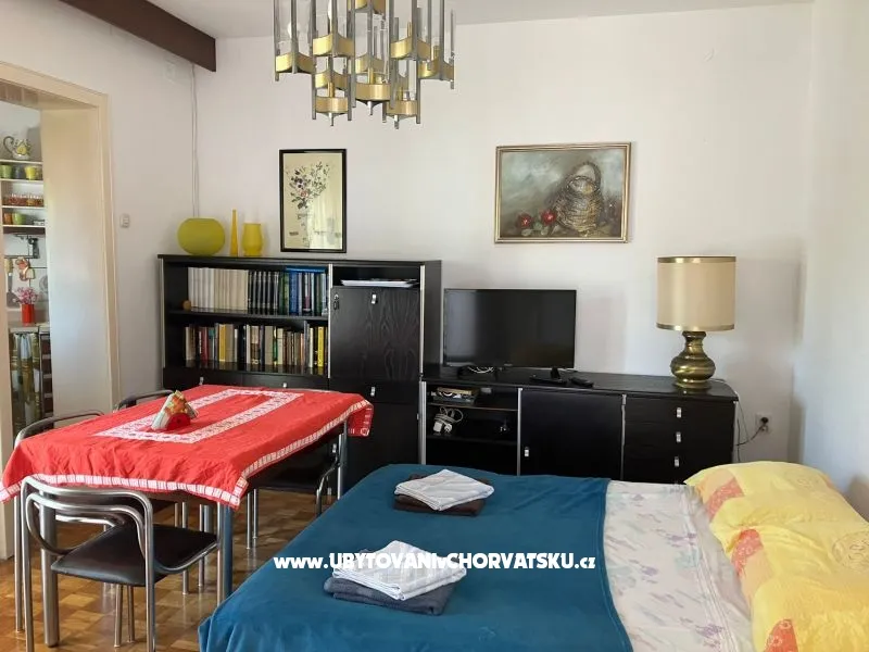 Situated behind Vila Danica, this apartment offers additional privacy and an extra large terrace. Apartmnet consists of 1 large room that is separated into 2 parts by a large closet in the middle of the room, 4 + 1 beds, 2 bathrroms (1 indoor, 1 outd
