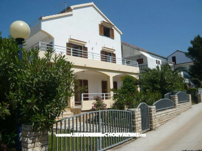 Private accommodation in 3 apartments for rent. 2 apartments 40m2 on the first floor, each for 4 persons and 1 apartment 60m2 on the second floor for 6 people. Each apartment has a balcony / terrace, TV, kitchen, bathroom ... Parking in the backyard, grill. House is 20 m from the sea and beach.Wi-Fi internet.