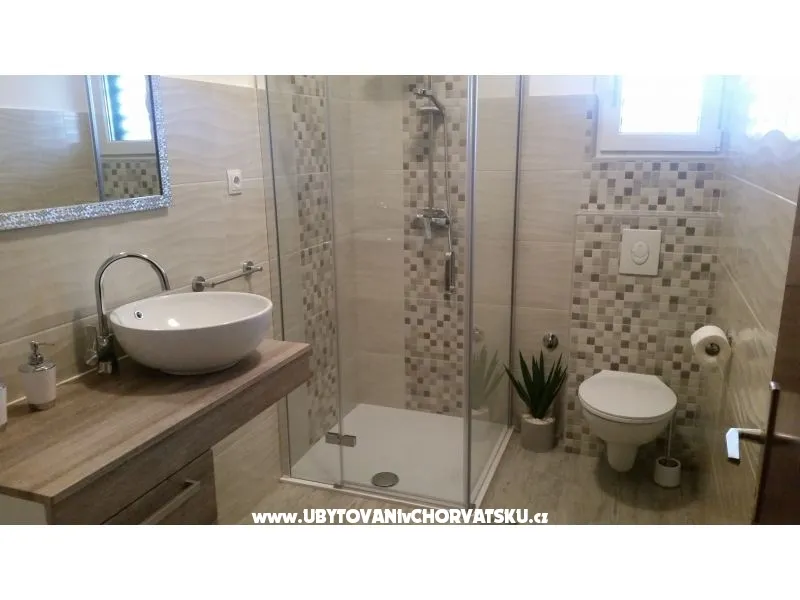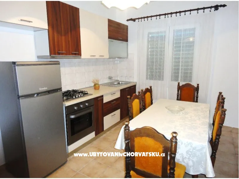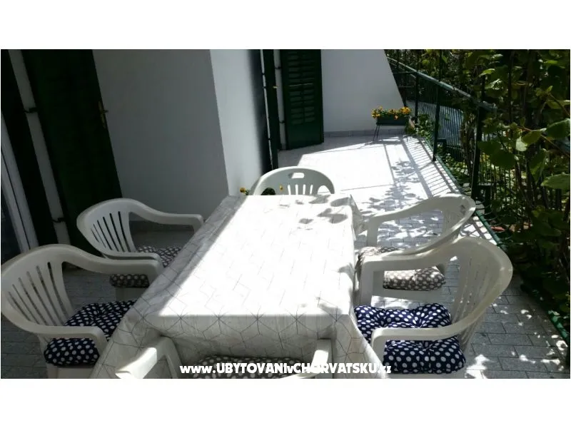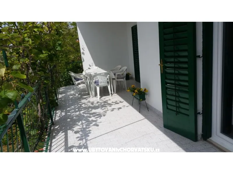 All apartments have a kitchen, bathroom, terrace, parking in the shade. We are located 80 meters from the beautiful pebble beach. All apartments are on the south side. The house has a large grassy garden in the shade, suitable for children. We offer many sports and leisure options. The owners are friendly and ready to help. There is a berth for boat.