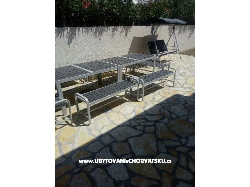 Large apartment with terrace and balcony, large bathroom. Double bed and extra bed in the bedroom. Sofa in the kitchen, safe, hairdryer. Washing machine in the laundry room on the ground floor.
