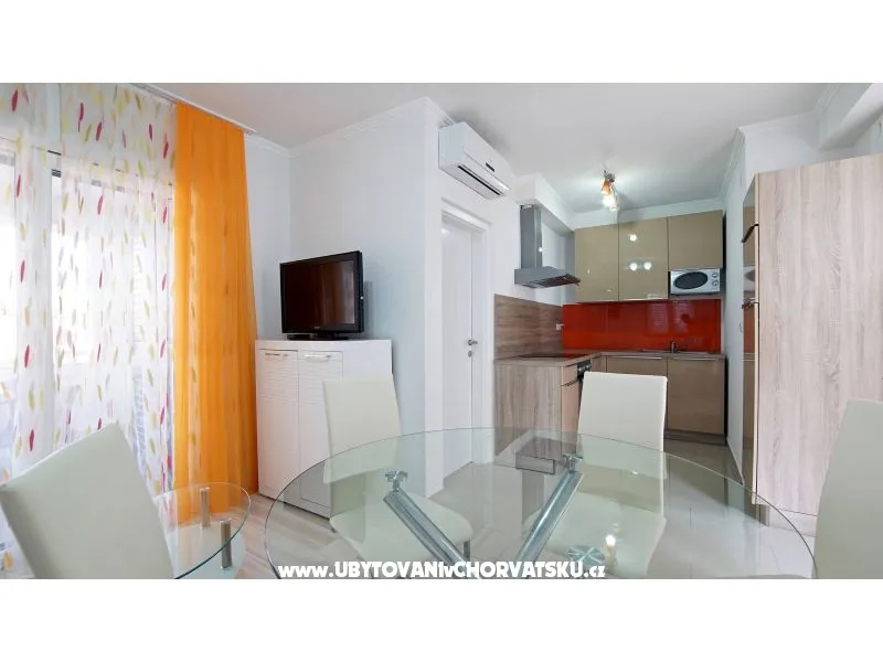 Apartments 5 & 7 (2 + 2): One bedroom with double bed, kitchen and living room where there's a expandable bed that sleeps two people. There is also a bathroom with shower and a terrace with a view