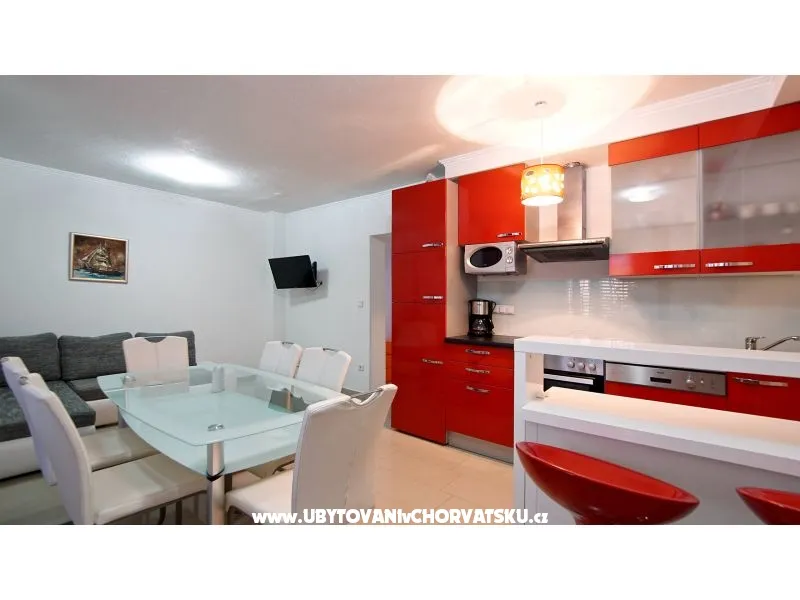 Apartments 1(6+0) & 3 (4+2): Each has 2 bedrooms, each with one double bed and one single bed (in ap 1) or an auxiliary bed for one person (in ap. 3), a living room with kitchen,2 toilets & 1 shower.