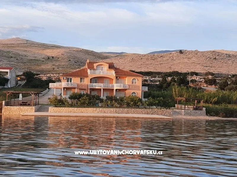 Villa Maestral is surrounded by sand and pebble beaches and is located in bay of Pag. The house is a quiet place suitable for perfect relaxation. Each year, we have numerous families with children who are always happy with our offer. The house is right by the sea, has its own pebble beach. Each apartment has its own balcony overlooking the sea. Apartments are fully furnished as air conditioning, TV-Sat, towels, bedding, dishes, etc. Villa Maestro has a 2000m2 courtyard which is available to all guests, as well as grill, outdoor shower and parking. The nearest town is 7 km away Novalja where are also restaurants, banks, galleries, tours and bustling night life
