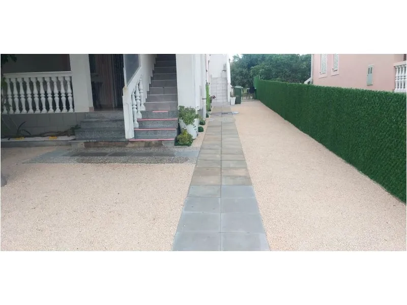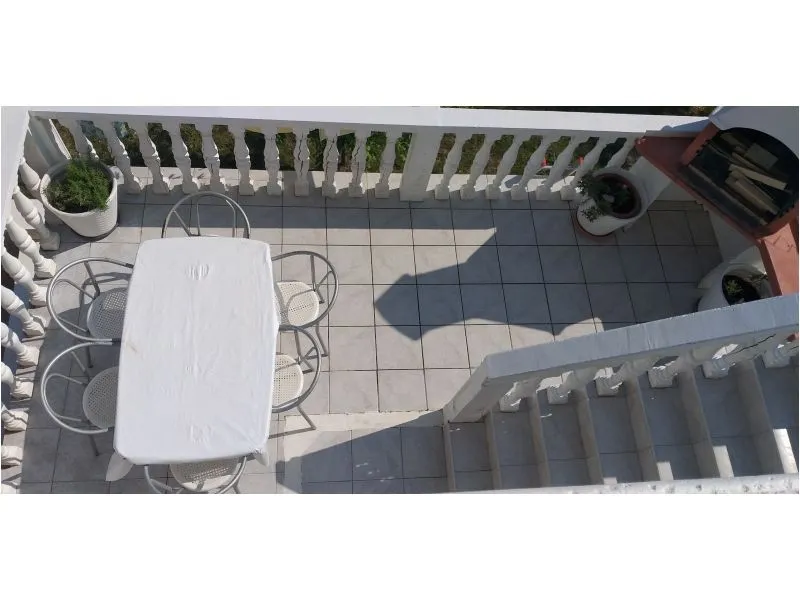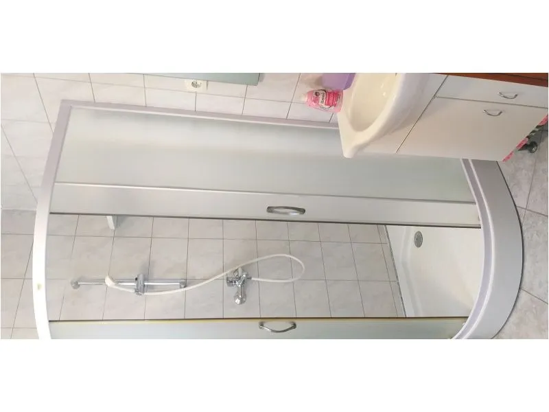 Accommodation clean, standard equipment. The kitchen is small, a dishwasher would be useful. Little storage space when accommodating 6 people. Enough towels and plates. In the children's room, the bunk bed can only be used for small children - the beds are low above each other. Unfortunately, almost all beds are very uncomfortable for us - feathers, hard, creaky, even the blue high bed looks comfortable and firm. Air conditioning without problems, quite large terrace with a partial view of the sea. Unfortunately, the bathroom is of an older date, only a curtain in the shower. A mop for wiping was missing - quite an important thing after a shower. I positively rate the washing machine, air conditioning, wifi and television. Beaches accessible on foot, nearby bistro, bakery, food, ice cream. The guests were smoking below us and this made our stay quite annoying. These are smoking apartments. We had a pleasant holiday despite the above-mentioned shortcomings.