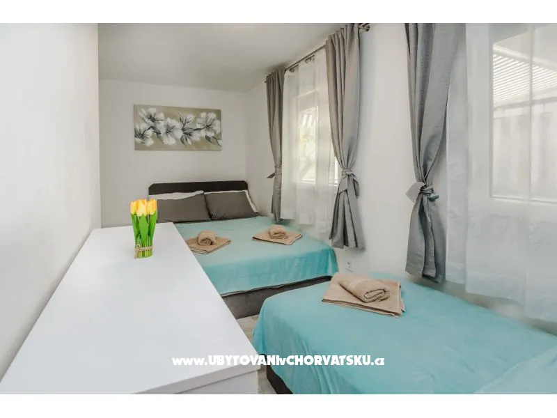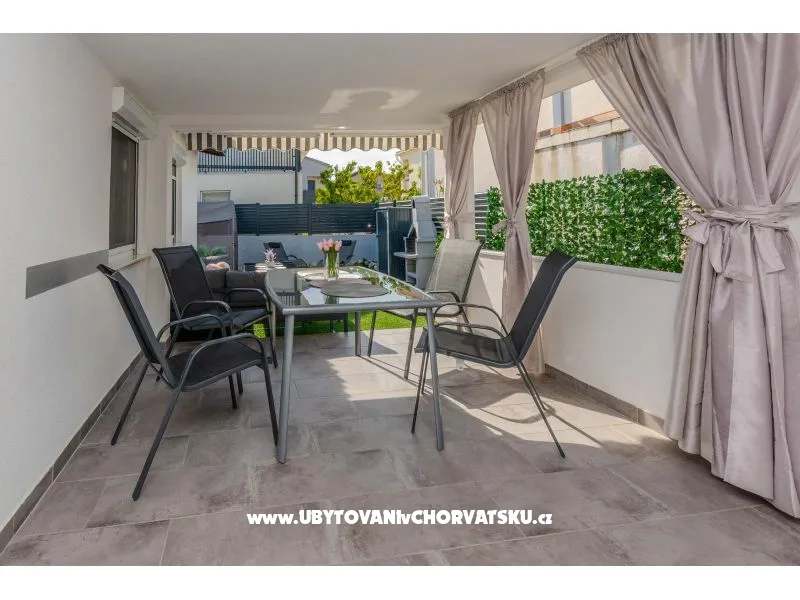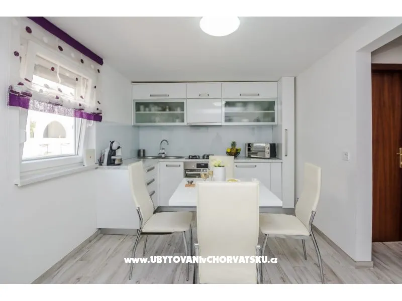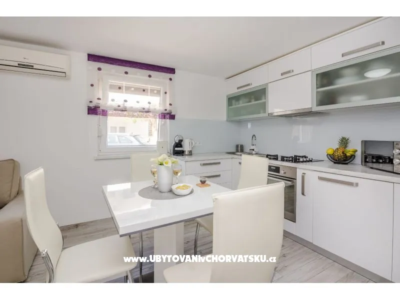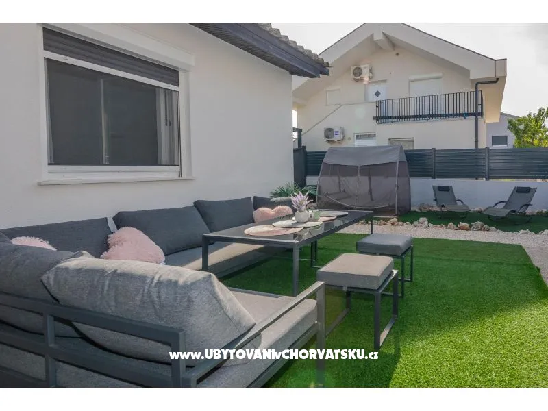 Fully and modernly equipped holiday house with a large terrace, yard and parking space. Located in the quiet southern part of the island of Vir, Prezide. 150m from the sea. The house is suitable for families with children because of the fenced yard.