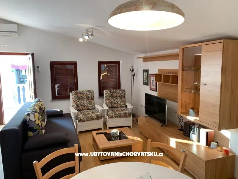 Rent an apartment on the island of Vir. The apartment has 3 bedrooms, bathroom, kitchen, dining room and living room and a terrace overlooking the sea. The apartment is air-conditioned, with TV and satellite, and other amenities. The apartment is rented from 1.5. to 1.11