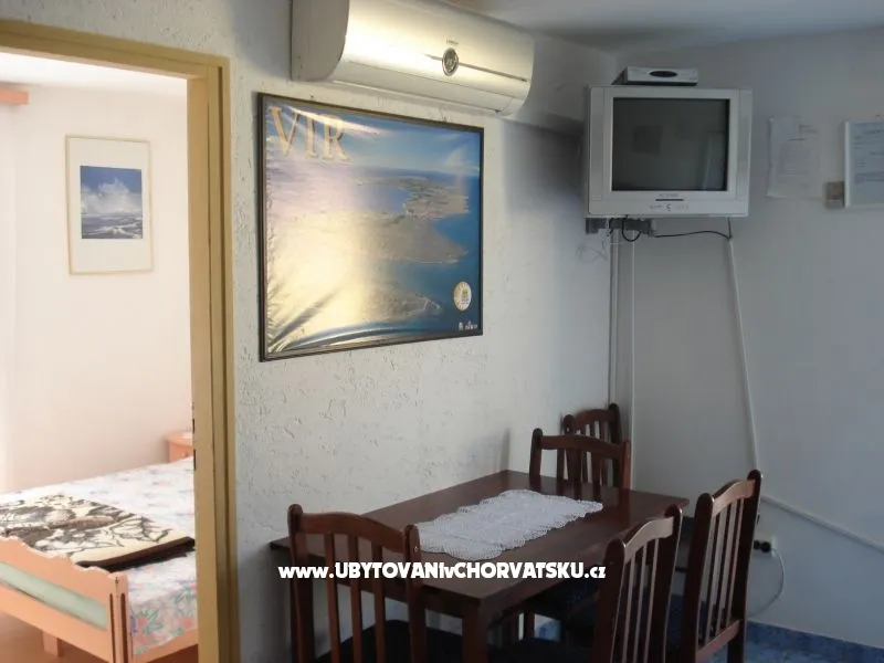 Apartments "Srnec Haus Vir" is located 70 meters from the beach, the apartments have two bedrooms for a total of 4 persons, living room with kitchen, bathroom with shower and a terrace or balcony. Each apartment has a separate entrance, air conditioning, TV, barbecue. The price does not include local tourist tax (1 € / day / person).